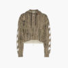 Navy blue cotton rainbow striped hooded jacket featuring a drawstring hood, a front zip fastening, two front pockets, long sleeves and a ribbed hem and cuffs.